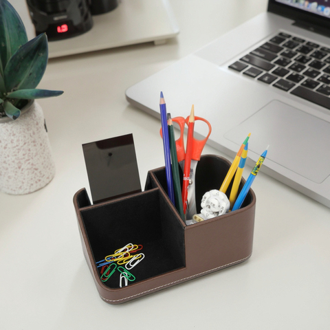 LG-B053 Faux Leather Pen Holder Organizer with Phone Holder and Business Card Holder Sundries Organizer Office Corporate Gifts