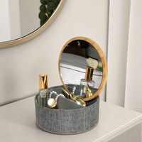 LG7267 Factory Bamboo Jewelry Organizer Case With Mirror Round Shape Mini Travel Jewelry Case Accessories Organizer Box Compact